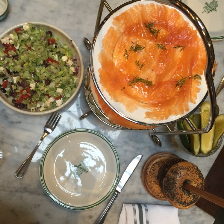New kids on the block:) Soho has the fanciest bagel spot now : Sadelle’s. This cutest vintage looking bakery has extremely yummy hand-rolled bagels where you can order it with the fanciest salmon plate. It is served in 3 floor pastry plates where each plate is divided by salmon, domates.cucumber.onions, cream cheese plates. Bagels arrive fresh out of owen so super warm. Even though each bagel is like 2$ this fancy service costs around 15$.